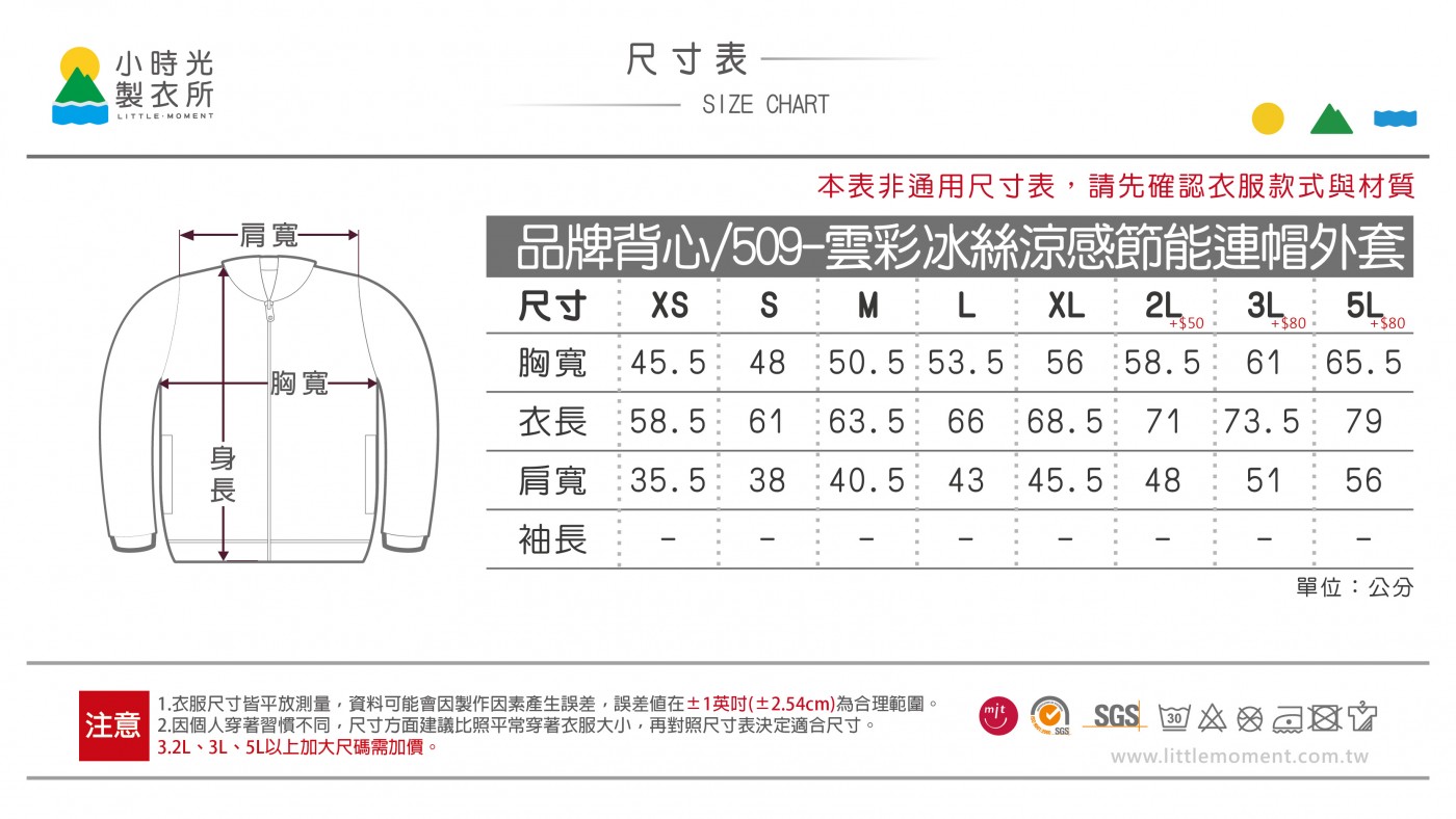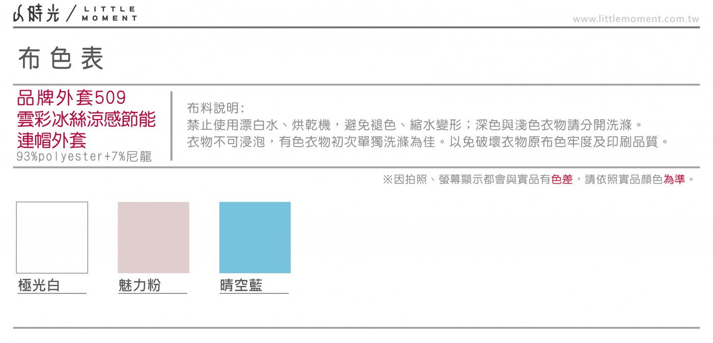 • 衣服會因不同時期染布,有顏色誤差值約10%左右,此為正常現象。