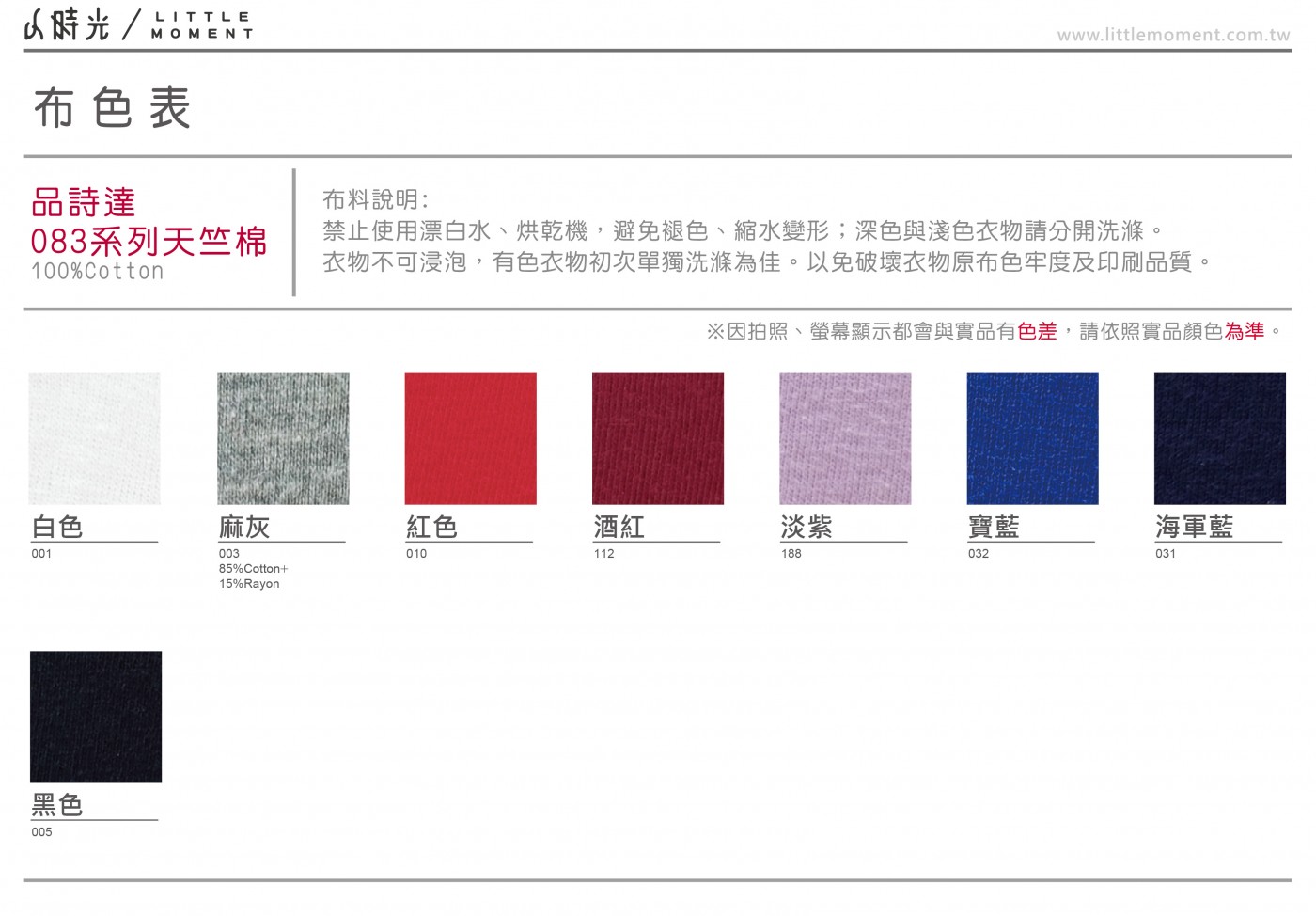 100%純棉 135g/m2(4.0oz) 32/-天竺棉 麻灰衣底:棉85%、人造絲15% 圓筒製作,領口1x1羅紋 【注意事項】 • 每台螢幕顯色不同,網站布色僅供參考,需以實體布色為主。 • 衣服會因不同時期染布,有顏色誤差值約10%左右,此為正常現象。 • 衣服請勿使用柔軟精,尤其排汗材質,會使衣服的纖維孔隙被堵住,影響排汗效果。